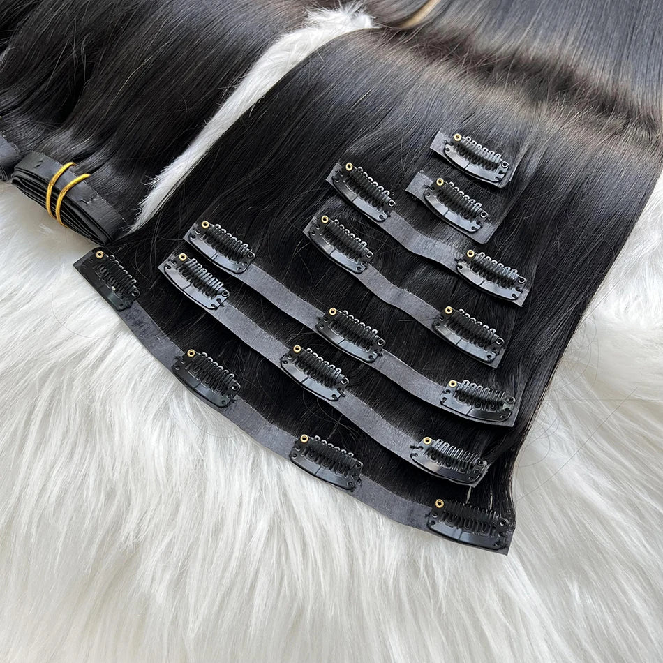 Nombre del cabello: Extensiones de cabello humano liso Clip sin costuras